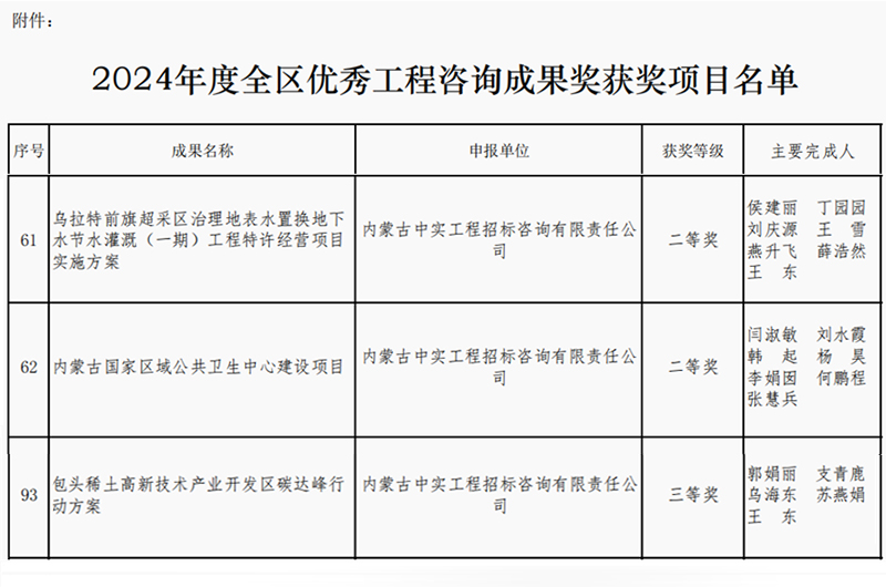 2025-04-169045 次2025年4月16日,内蒙古工程咨询协会公布了2024年度优秀咨询成果奖获奖单位名单,我司取得两个二等奖和一个三等奖,我司专业能力和服务质量再次获得行业的认可。此次获奖,不仅体…